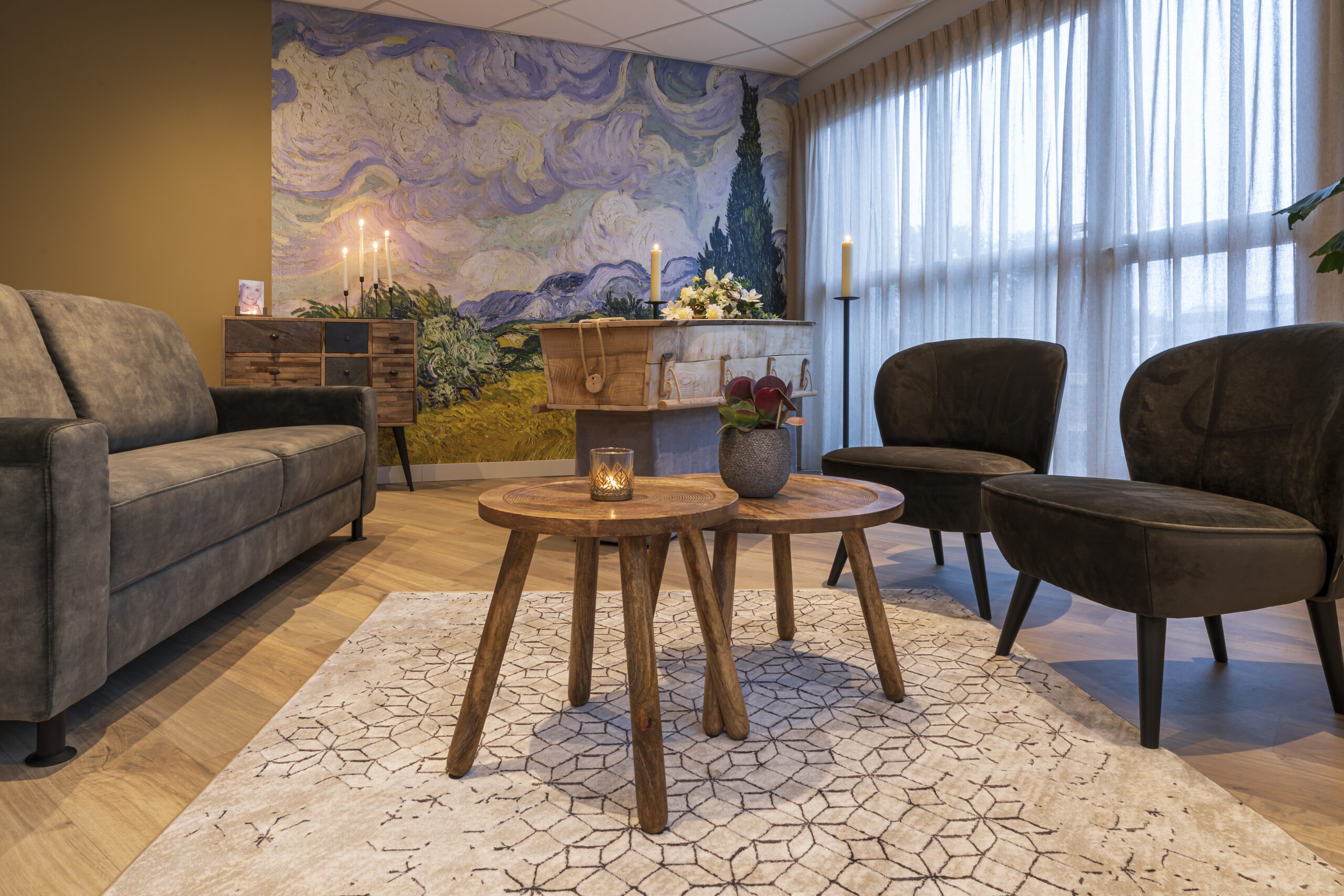 Binnenin is het pand ingericht in een mix van klassiek en modern. De inrichting is gericht op sfeer en comfort, zodat u vanaf het eerste moment het gevoel hebt dat u thuis bent. Het pand beschikt over airconditioning, een oplaadpunt voor elektrische auto’s en een uitvaartwinkel.